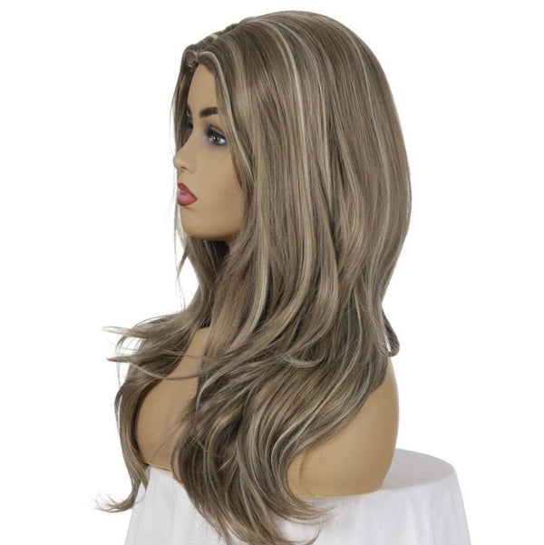 Women Split Wigs Long Curly Hair Synthetic Headgear(Linen Brown + Light Gold)
