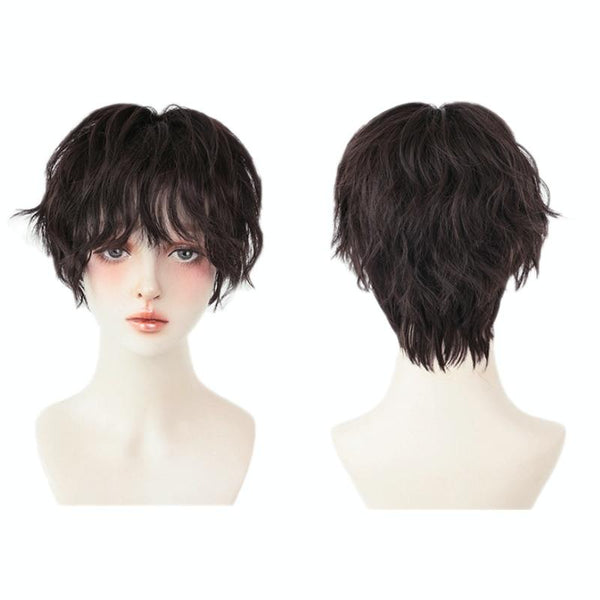 Women Tinfoil Permed Natural Fluffy Full Head Cover Wig(Black Tea)