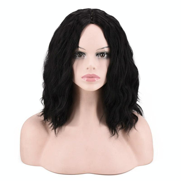 WS717 Ladies Short Curly Wig Corn Hot Water Ripple Chemical Fiber Wig(1B)