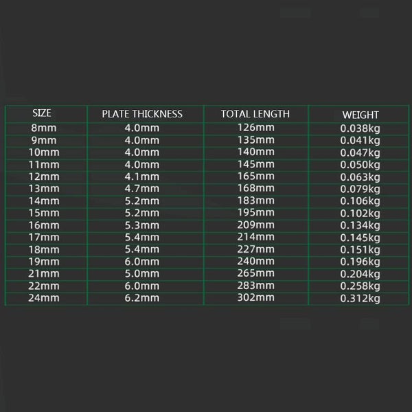 6. Packing list: 10 sets: 8mm/10mm/12mm/13mm/14mm/15mm/17mm/19mm/22mm/24mm, 12 sets: 8-10-12-13-14-15-16-17-18 -19-22-24mm