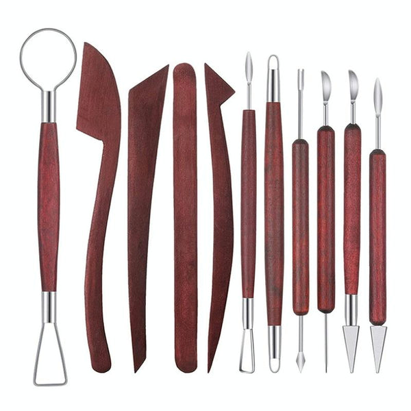 11 PCS/Set Pottery Wooden Rod Carving Scraper Clay Aid