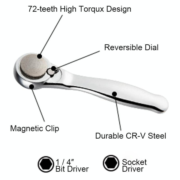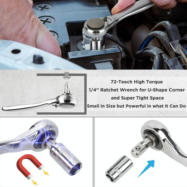 5. 1/4 inch ratchet wrench can be switched and locked in the left and right direction.