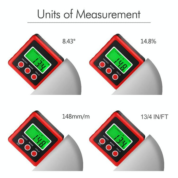 3 Button Mini Precision Magnetic Digital Tilt Box / Tilt Meter / Inclinometer(Red)