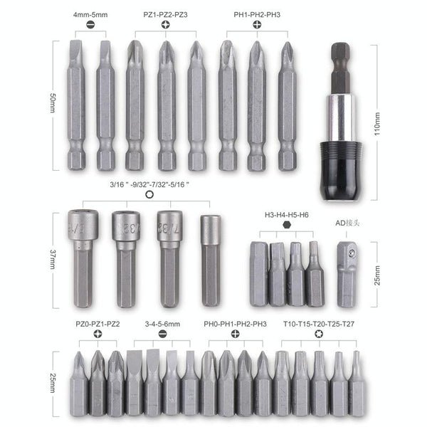 34 PCS / Set DT00034 Chrome Vanadium Alloy Steel Screwdriver Batch