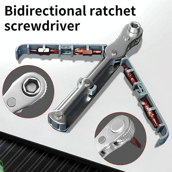 36-Tooth Bi-Directional Ratcheting Screwdriver Set With 4 Double-Ended Bits(Gray)