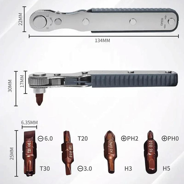 1. Bidirectional ratchet precision screwdriver, 90-degree right-angle design, suitable for narrow spaces, compact and easy to operate