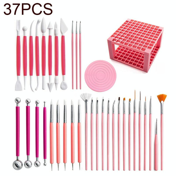 37 In 1 Pottery Tool Set Includes Carving Knife & Turntable & Brush & 96-hole Easel