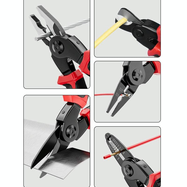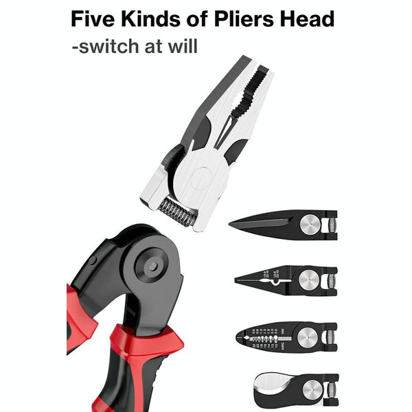 5 In 1 Combination Interchangeable Head Pliers Kit General Repair Screwdriver Pliers(Red Black)