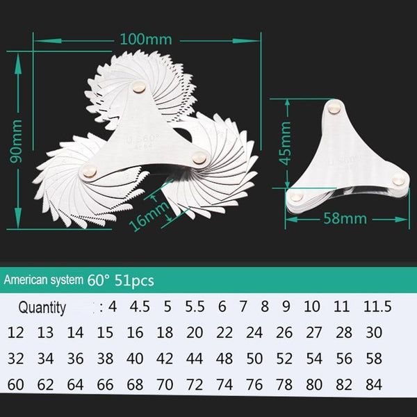 51 PCS US Screw Pitch Thread Blades 60 Degrees CR Stainless Steel Thread Gauge
