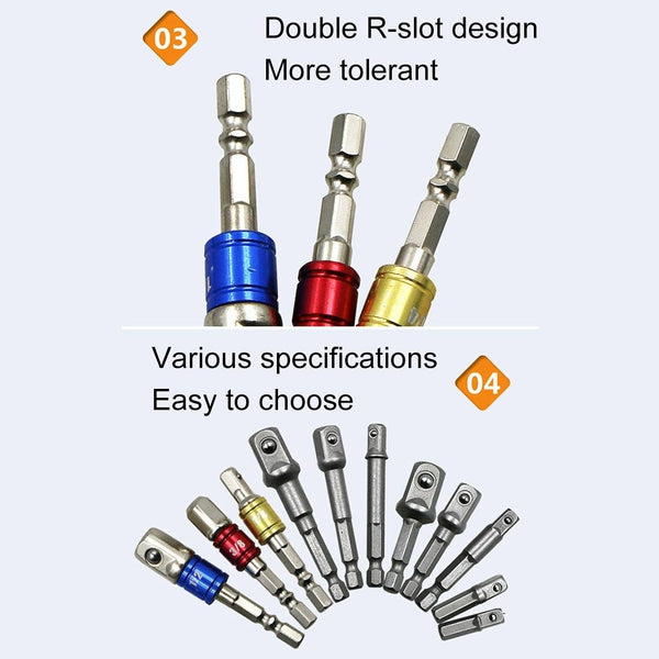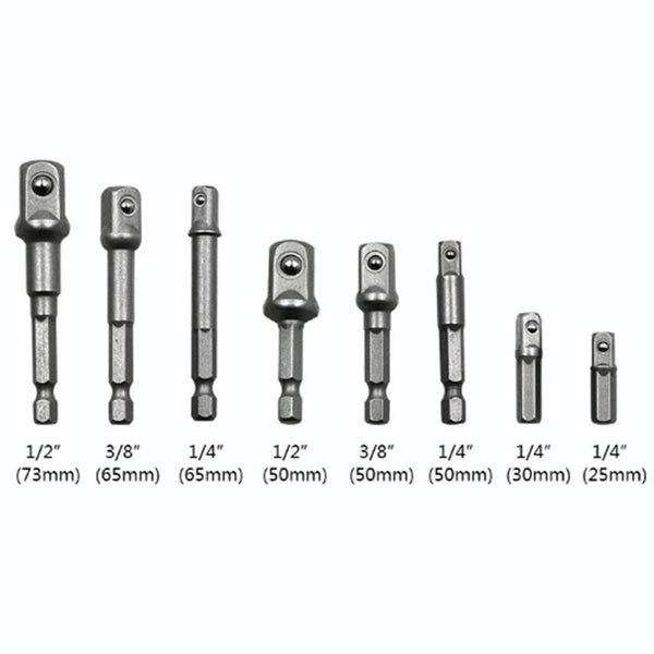 8 PCS/Set Socket Bit Extension Bar Hex Shank Adapter Drill Nut Driver Power Drill Bit, 1/4(65/50/30/25mm), 3/8(65/50mm), 1/2(73/50mm)