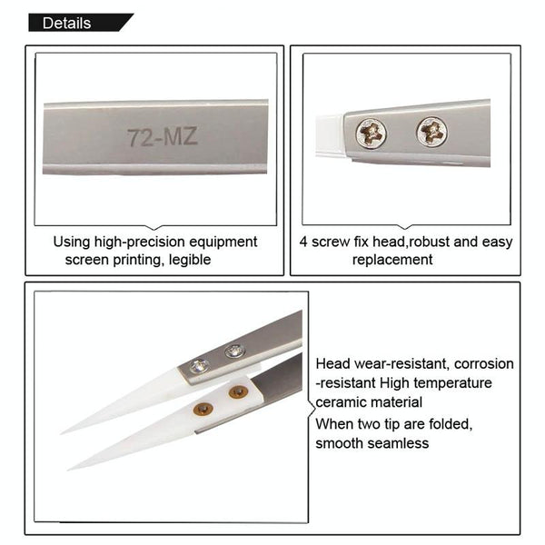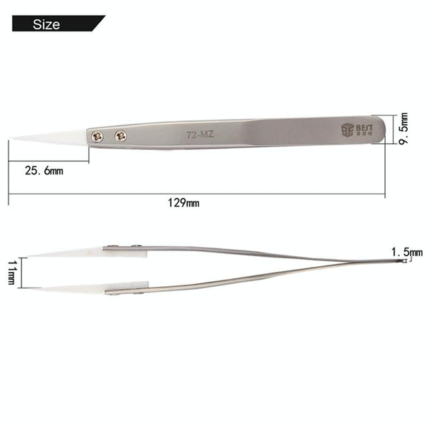 BEST BST-72-MZ 302 Stainless Steel High Temperature Resistance Ceramic Tip Tweezers
