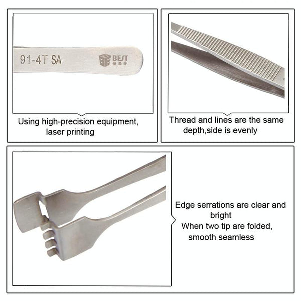BEST BST-91-4T SA Professional Stainless Steel Wafer Tweezers for Silicon Wafer
