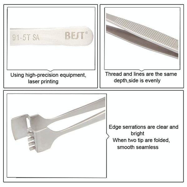BEST BST-91-5T SA Professional Stainless Steel Wafer Tweezers for Silicon Wafer
