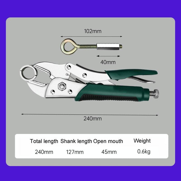 10. Dimensions: The total length of 4-point/6-point pliers is 240 mm, the handle length is 127 mm, the opening of 4-point pliers is 35 mm, the opening of 6-point pliers is 45 mm, the total length of 4-point and 6-point pliers is 220 mm, and the handle length is 127 mm. Opening 25-50 mm