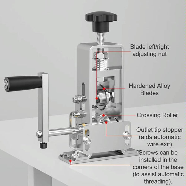 7. Easy to use, put the wire, adjust the knob to clamp the blade on the wire, and then pull the wire to make it pass through the wire feed wheel, the outer skin of the wire is stripped off, and the core can be taken out, and the multi-hole wire feed plate is convenient for the use of cables of different thicknesses