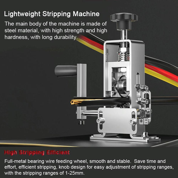 2. Stripping efficiency increased, metal bearing wire feed wheel, smooth wire feed, smooth and smooth, knob design for easy adjustment of the stripping range, stripping range of 1-25mm