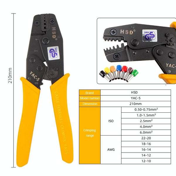 HSD YAC-5 Pressure 0.5-6mm Square Ratchet Crimping Plier European Tube And Pin Terminal Crimping Plier