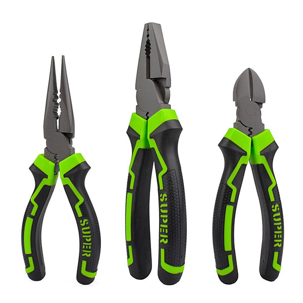 5. Function: long nose pliers, symmetrical head, functional teeth clear, solid objects. Edge, double heat treatment, cutting effect is more perfect. The diagonal pliers are delicate and sharp, and the cutting force is stronger. Wire clamps, the jaws are symmetrical, the functional teeth are clear, and the objects are fixed with solids. Edge, double heat treatment, better cutting effect.