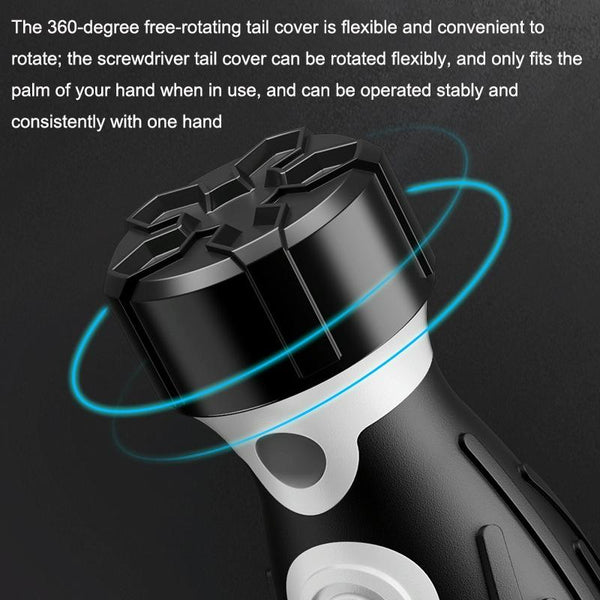 4. The 360-degree free-rotating tail cover is flexible and convenient to rotate; the screwdriver tail cover can be rotated flexibly, and only fits the palm of your hand when in use, and can be operated stably and consistently with one hand