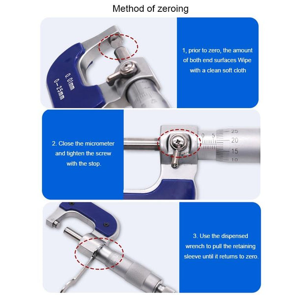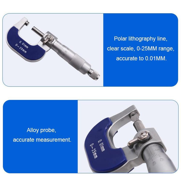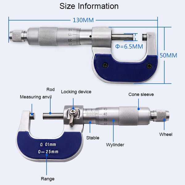 Stainless Steel Screw Micrometer Outer Diameter Micrometer 0-25mm