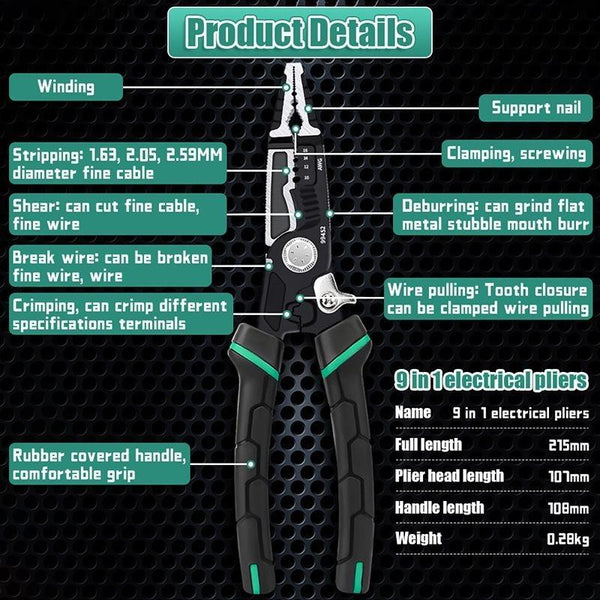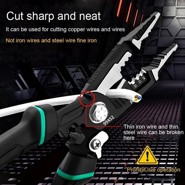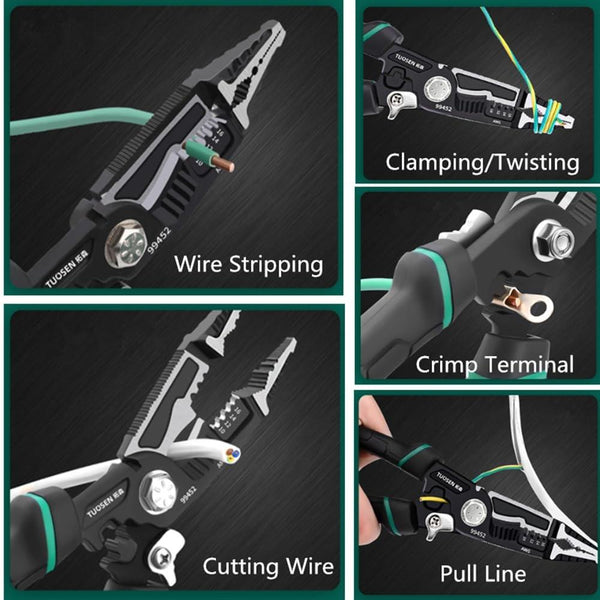 TUOSEN 9-in-1 Multifunctional Wire Stripper with Pointed Nose Cable Cutting and Crimping Tool
