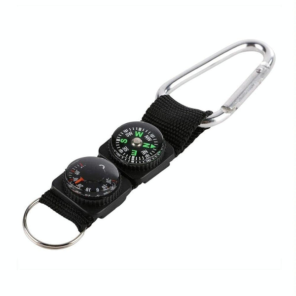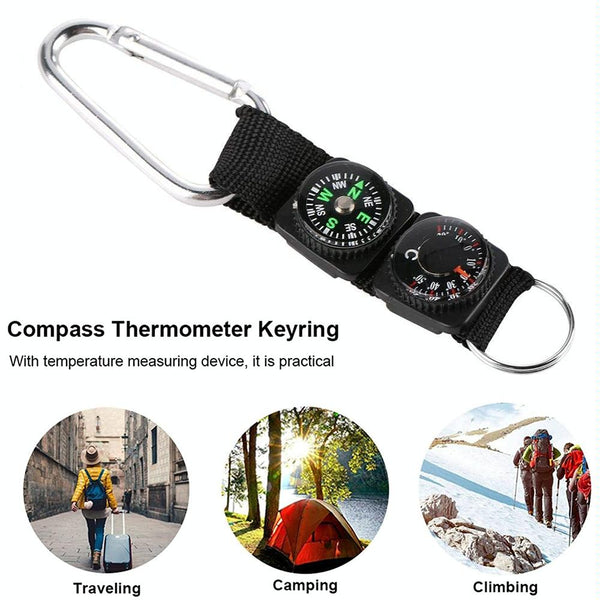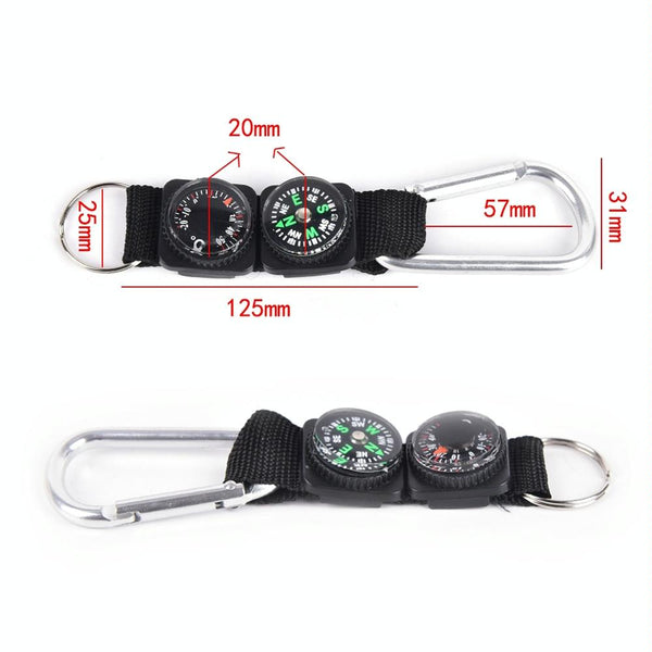 3 in 1 Camping Climbing Hiking Mini Carabiner with Keychain Compass Thermometer Hanger Key Ring Black
