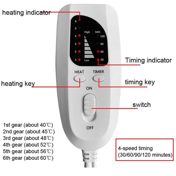 4. 6-speed temperature adjustment: 40-65 degrees Celsius adjustable to meet your different needs