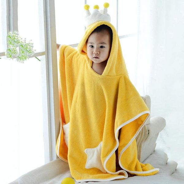 60x120cm Kids Bath Towel Thickened High Density Coral Fleece Hooded Cloak Water Absorbent Cape(Yellow)
