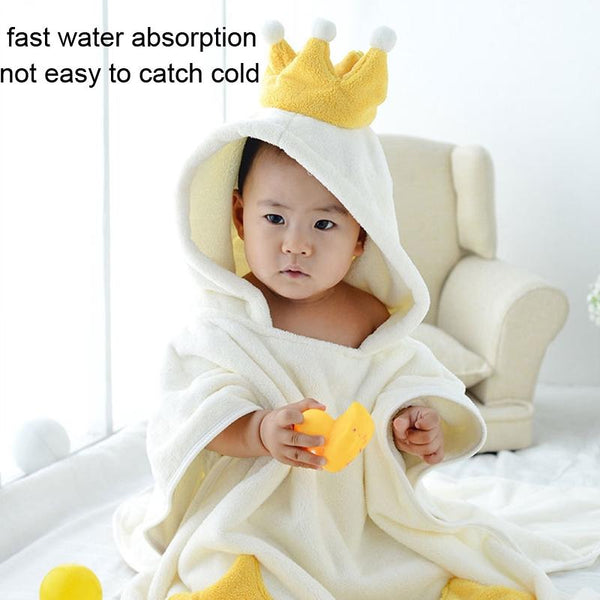 70x140cm Kids Bath Towel Thickened High Density Coral Fleece Hooded Cloak Water Absorbent Cape(White)