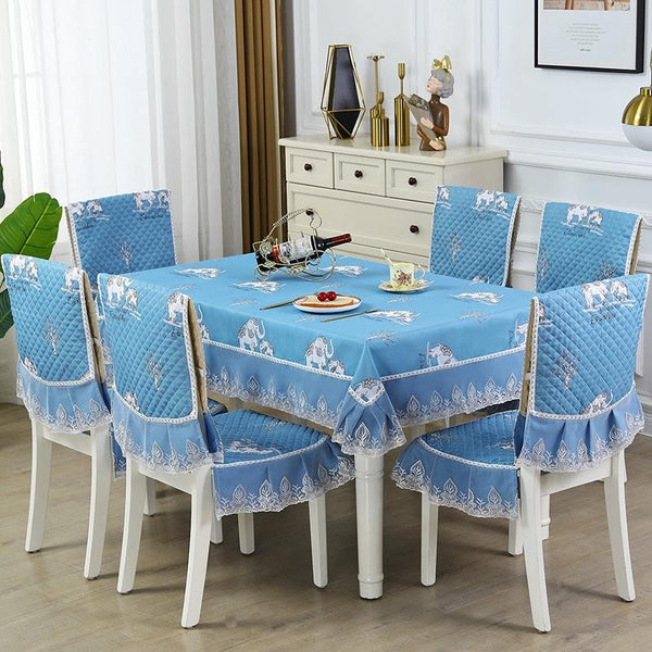 Home Dining Table/Chair Non-Slip Cover, Size: 1 Chair Cover+1 Back Cover(African Elephant Blue)