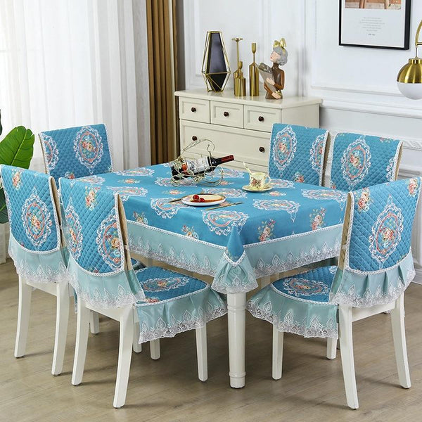 Home Dining Table/Chair Non-Slip Cover, Size: 150x200cm Tablecloths(Flower In The Mirror Blue)