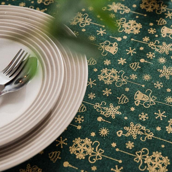 Linen Cotton Christmas Party Tablecloth Rectangle Bronzing Dinning Table Cover, Size:140x140cm(White)