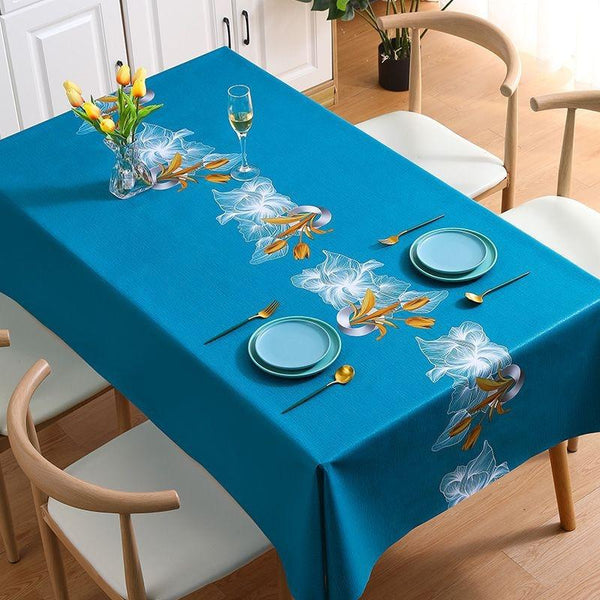 PVC Waterproof Oil-proof Embroidery Yarn Tablecloth, Size: 120x170cm(Tulip Fairy Blue)