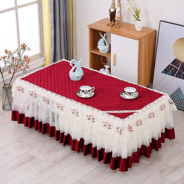 Simple Fabric Lace Rectangular Tablecloth, Size: 75x140cm(Italian Velvet Red)