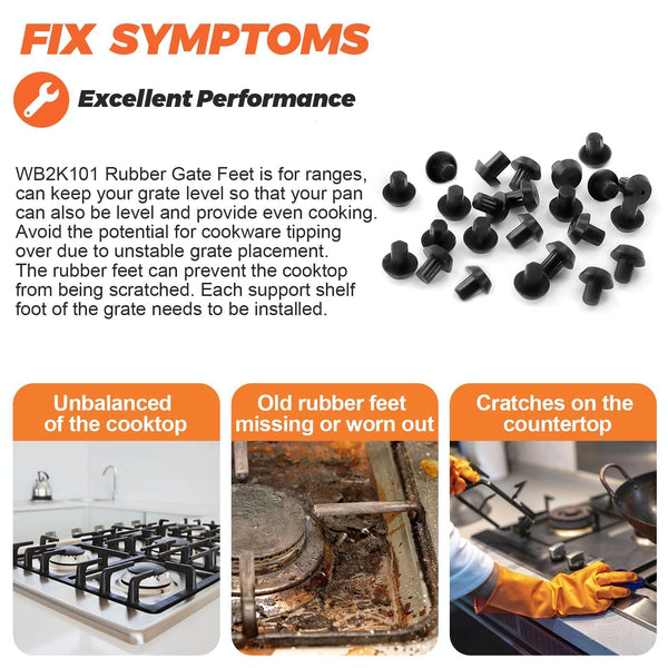 1. WB2K101 rubber door feet for stovetops keep your grates level so your pots are level as well and provide even cooking.