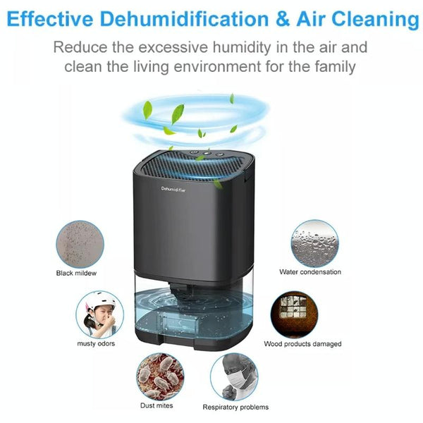 1. Powerful dehumidification: dehumidification in small spaces of 5-26 square meters, daily dehumidification capacity up to 350 ml (30 degrees Celsius, 80% RH)