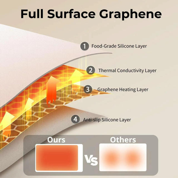 2. Large heating area Experience fast and even heating, a full-surface graphene heating layer, you can heat a variety of dishes at the same time to meet the diverse cooking needs of your family.
