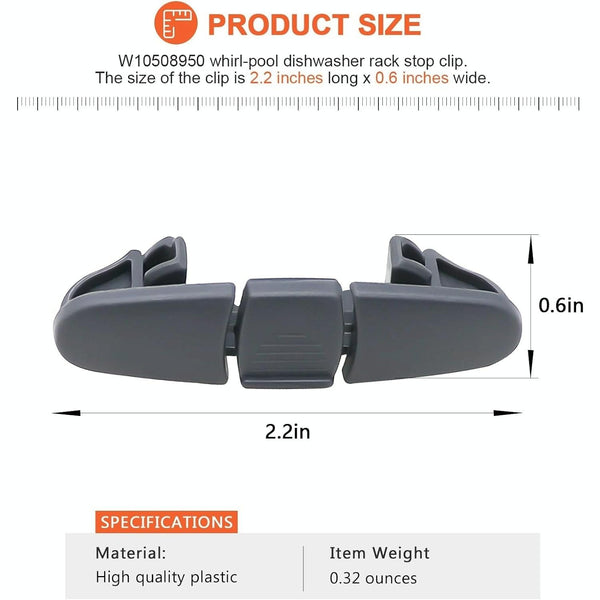 2pcs W10508950 Dishwasher Rack Stop Clip For Whirlpool Replacement Parts