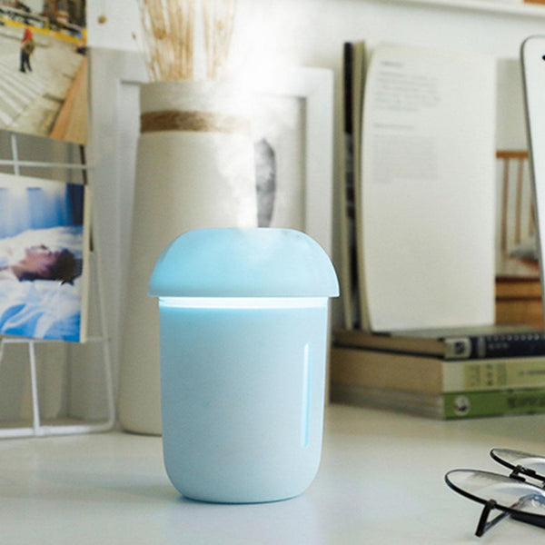 3 in 1 Multi-function USB Charge Mushroom Shape Electric Aroma Essential Ultrasonic Aromatherapy Cool Mist Humidifier with Extended USB Port(Blue)