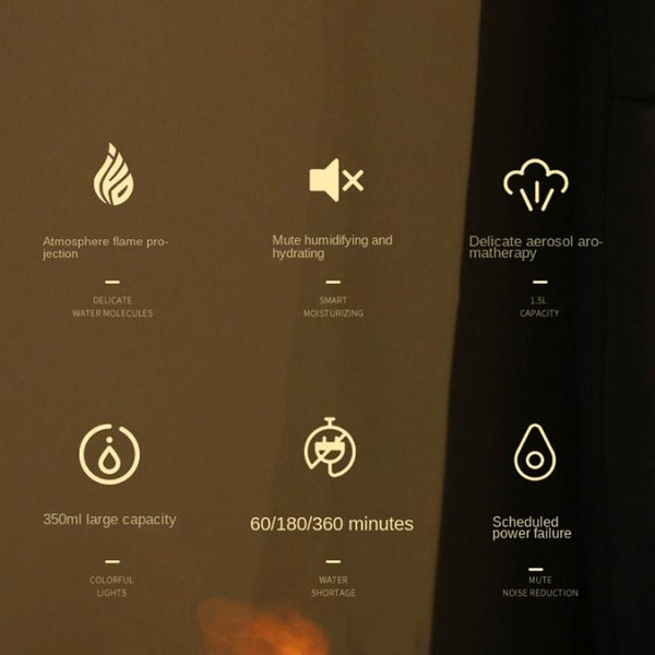 1. Atmosphere flame projection, silent humidification and hydrating, delicate gas and mist aromatherapy