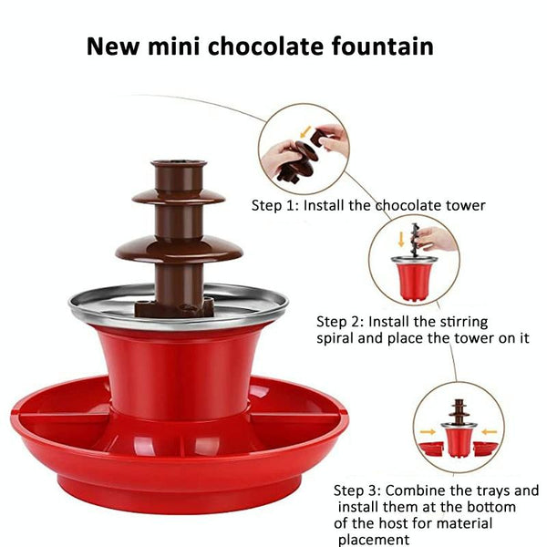 35W3 Tier Chocolate FountainMini Fondue Set with Hot Melting Pot Base 220V EU Plug