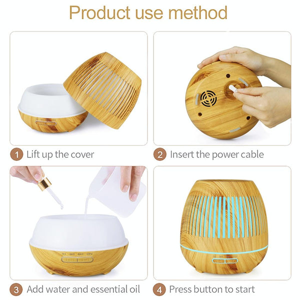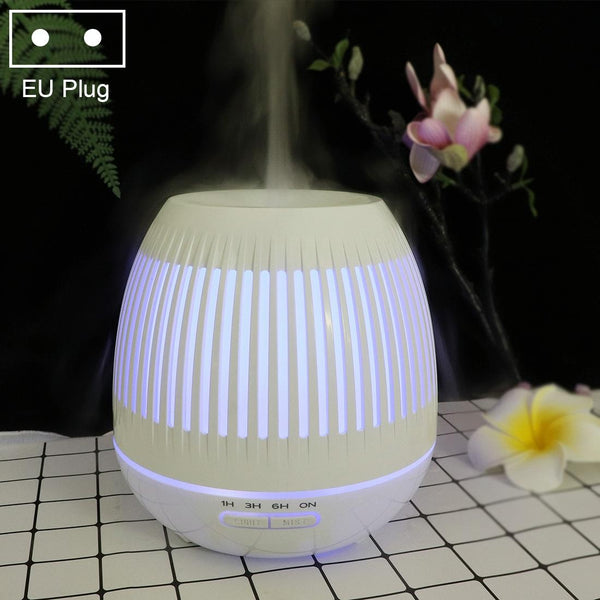 400ml Hollow-out LED Humidifier Wood Grain Air Purifier Aromatherapy Machine Automatic Alcohol Sprayer with Colorful LED Light, Plug Specification:EU Plug(White)