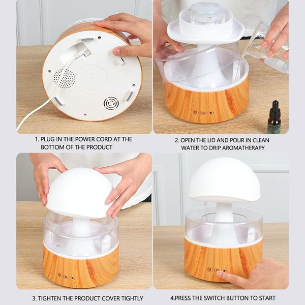 500ml Rain Humidifier Mushroom Cloud Colorful Night Lamp Aromatherapy Machine With Remote Control, Style: USB Direct Plug(Wood Grain)