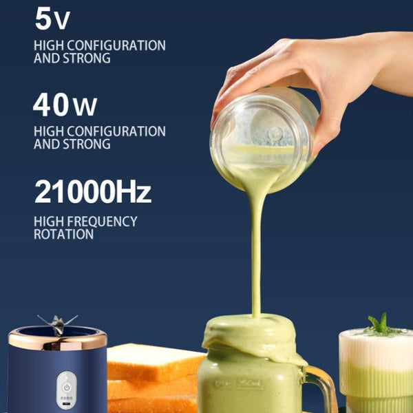 5V 40W 6 Blades Cordless Electric Juicer Portable Juice Squeezer, Spec: Blue Double Cup