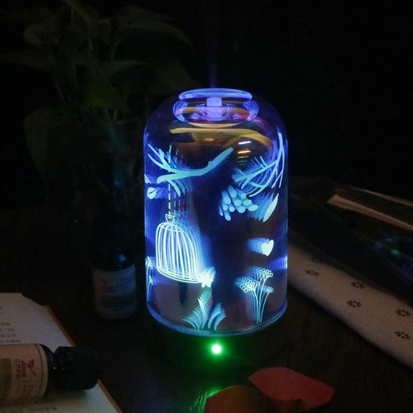 AOD-8 Jungle Discovery 3D Glass Aromatherapy Machine Silent Bedroom Mini Humidifier US Plug