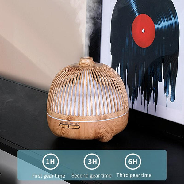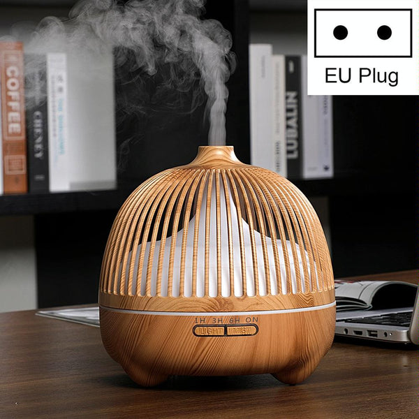 Bird Cage Wood Graphic Aromatherapy Machine Ultrasonic Smart Home Colorful Night Light Hollow Humidifier, Product specifications: EU Plug(Light Wood Pattern)