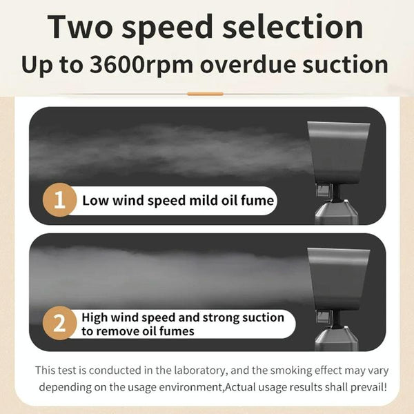 1. Strong suction desktop range hood, two adjustable wind speeds, high-power brushless motor, up to 3600rpm, low noise, strong suction and worry-free smoke exhaust