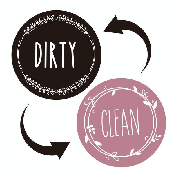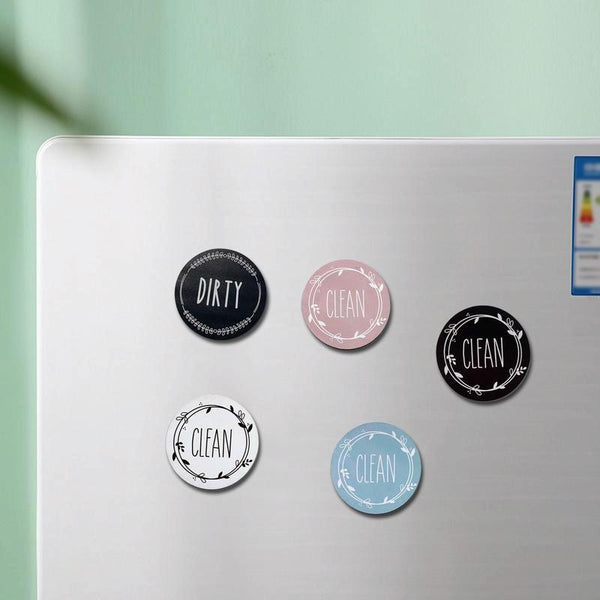 Dishwasher Round Magnet Clean Dirty Sign Double-Sided Dishwasher Magnet Cover(Black Pink)