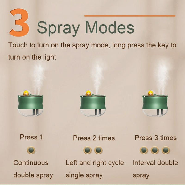 ICARER FAMILY F08 Cartoon Desktop Double Spray Humidifier with Night Light, Spec: Plug-in (Green)