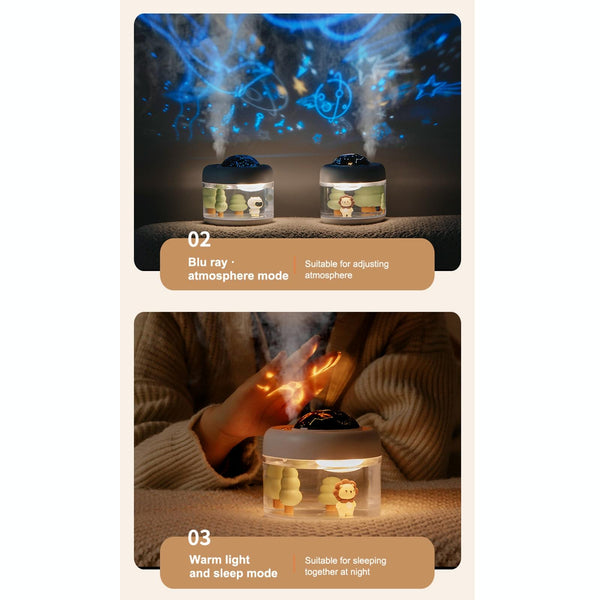J221 Multifunctional Night Light Projection Humidifier(White Lion)